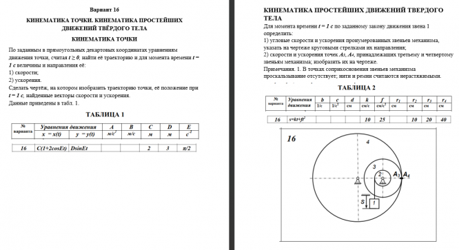ДЗ 1: Кинематика точки и простейших движений твердого тела вариант 16