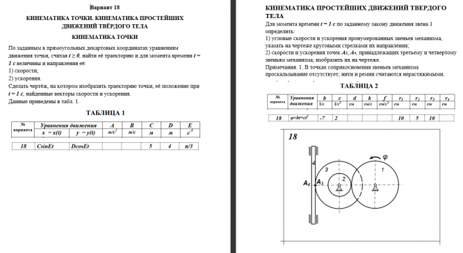 ДЗ 1: Кинематика точки и простейших движений твердого тела вариант 18