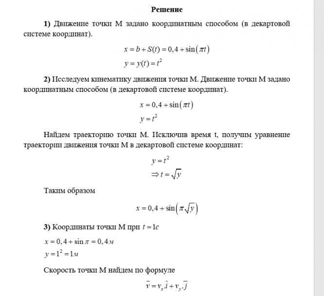 В первой части задания нужно исследовать движение точки M и определить основные характеристики этого движения.Требуется: