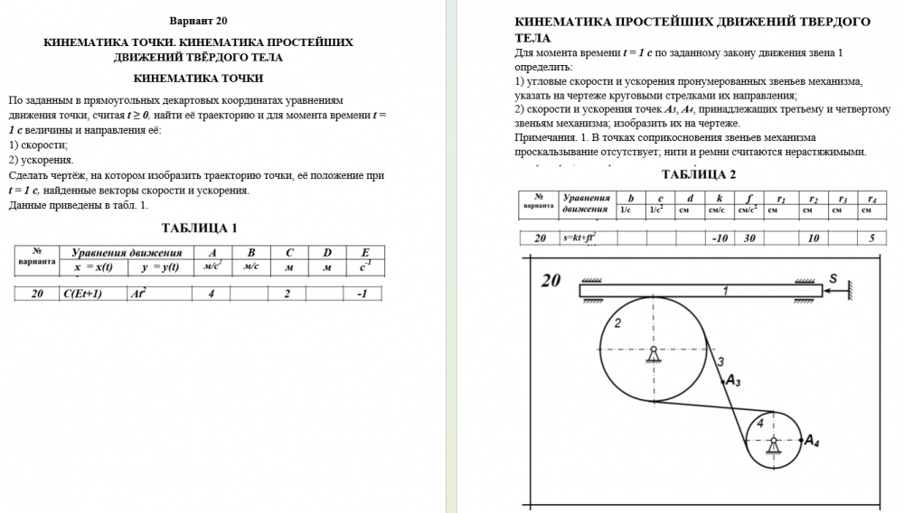 ДЗ 1: Кинематика точки и простейших движений твердого тела вариант 20