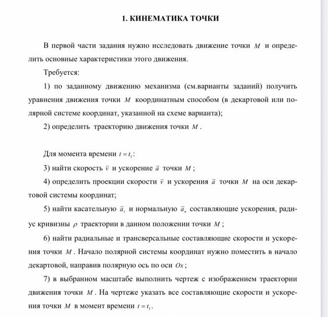ДЗ 1: Кинематика точки и простейших движений твердого тела вариант 20