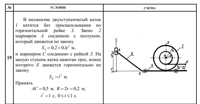 ДЗ 2: Кинематика плоского движения твердого тела вариант 19