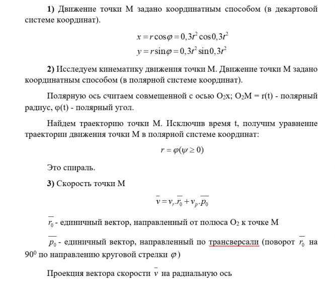 6) найти радиальные и трансверсальные составляющие скорости и ускорения точки M. Начало полярной системы координат нужно поместить в начало декартовой, направив полярную ось по оси Ox;