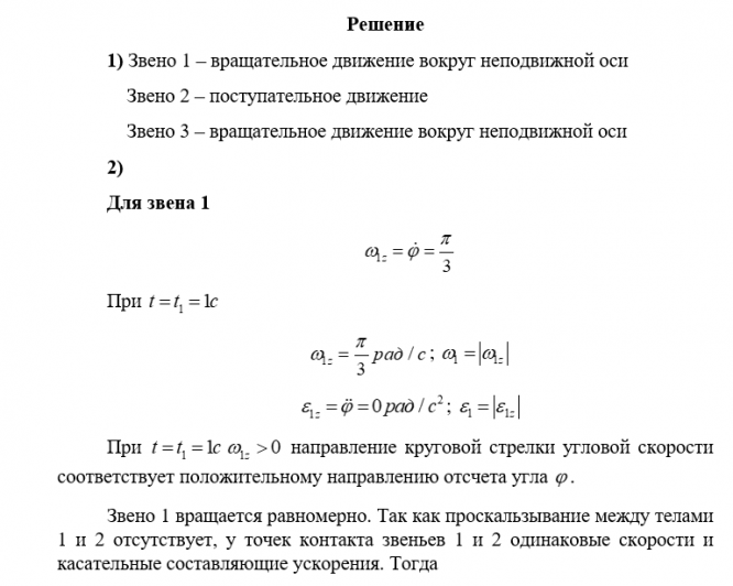 2) определить угловые скорости и угловые ускорения звеньев механизма, совершающих вращательное движение, указав на чертеже круговыми стрелками их направления, определить характер движения тел (замедленный или ускоренный);