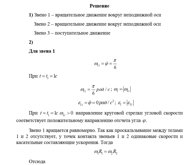2) определить угловые скорости и угловые ускорения звеньев механизма, совершающих вращательное движение, указав на чертеже круговыми стрелками их направления, определить характер движения тел (замедленный или ускоренный);