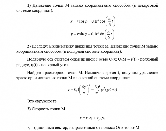 В первой части задания нужно исследовать движение точки M и определить основные характеристики этого движения.Требуется: