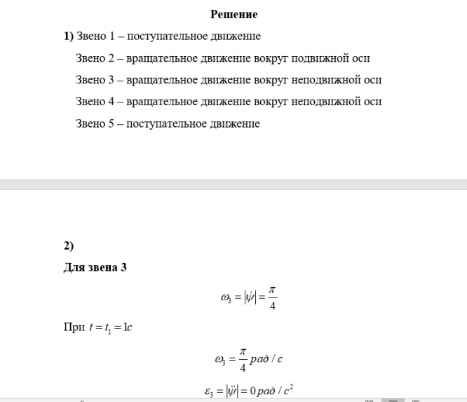 2) определить угловые скорости и угловые ускорения звеньев механизма, совершающих вращательное движение, указав на чертеже круговыми стрелками их направления, определить характер движения тел (замедленный или ускоренный);