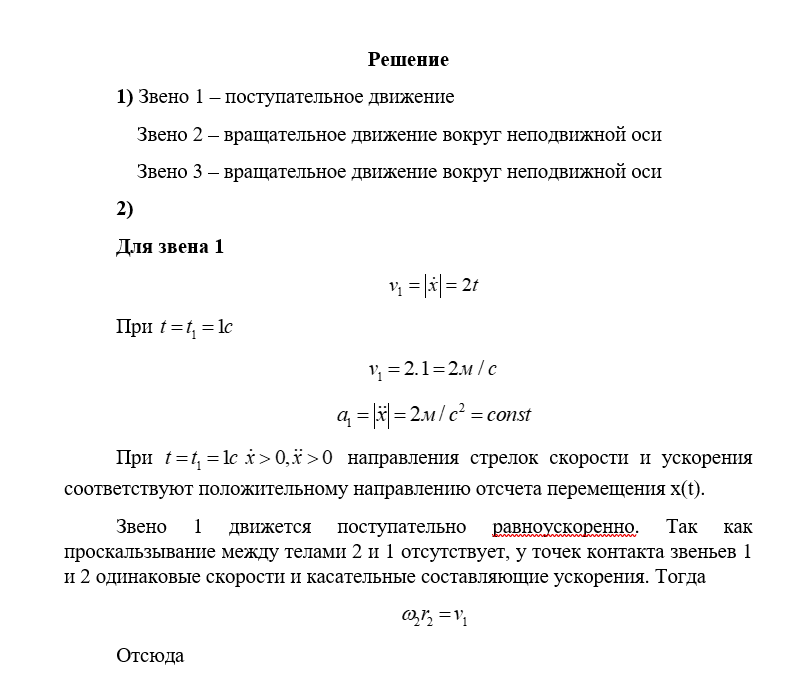 2) определить угловые скорости и угловые ускорения звеньев механизма, совершающих вращательное движение, указав на чертеже круговыми стрелками их направления, определить характер движения тел (замедленный или ускоренный);