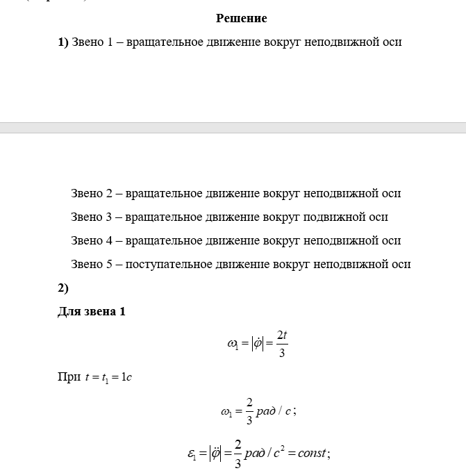 2) определить угловые скорости и угловые ускорения звеньев механизма, совершающих вращательное движение, указав на чертеже круговыми стрелками их направления, определить характер движения тел (замедленный или ускоренный);