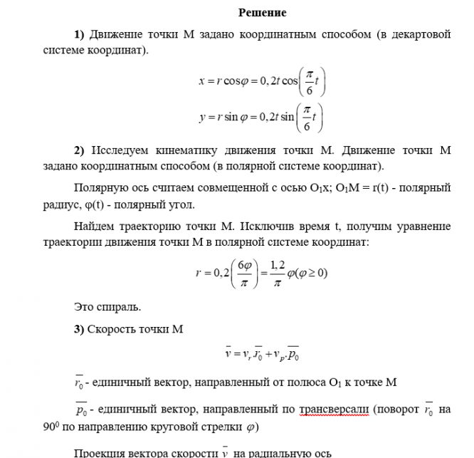 6) найти радиальные и трансверсальные составляющие скорости и ускорения точки M. Начало полярной системы координат нужно поместить в начало декартовой, направив полярную ось по оси Ox;