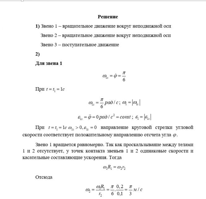 2) определить угловые скорости и угловые ускорения звеньев механизма, совершающих вращательное движение, указав на чертеже круговыми стрелками их направления, определить характер движения тел (замедленный или ускоренный);