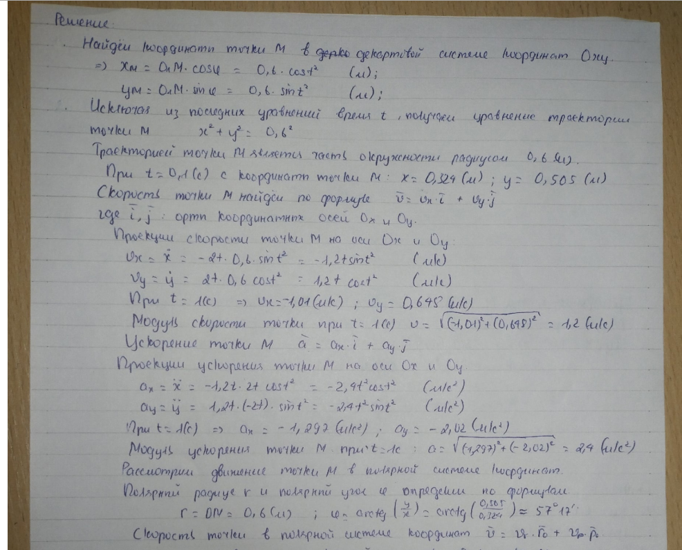 уравнения движения точки M координатным способом (в декартовой или полярной системе координат, указанной на схеме варианта);