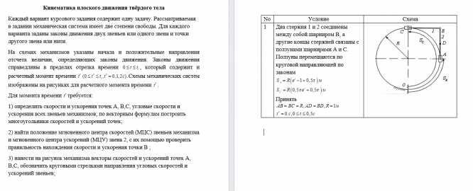 Каждый вариант курсового задания содержит одну задачу. Рассматриваемая в заданиимеханическая система имеет две степени свободы. Для каждого варианта заданы законыдвижения двух звеньев или одного звена и точки другого звена или нити.