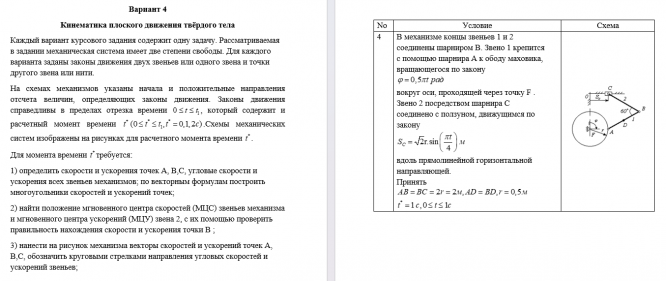 ДЗ 2: Кинематика плоского движения твердого тела вариант 4