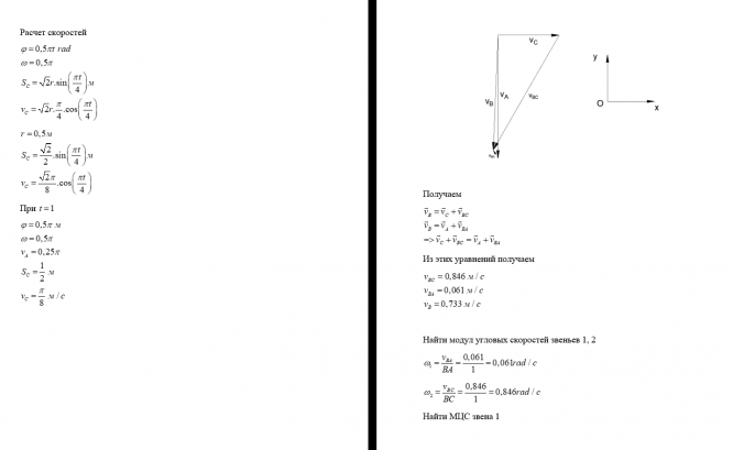1) определить скорости и ускорения точек A, B,C, угловые скорости и ускорения всех звеньев механизмов; по векторным формулам построить многоугольники скоростей и ускорений точек;