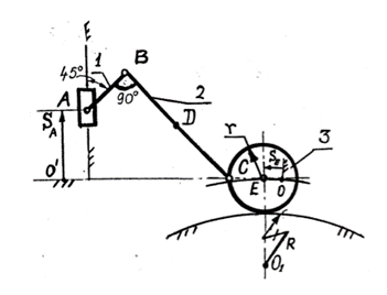 Ось катка движется по закону Звено 2 механизма шарнирами С и В связано с ободом катка 3 и звеном 1, соединенным шарниром А с ползуном, который движется по закону Принять.