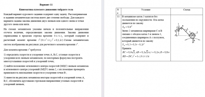 ДЗ 2: Кинематика плоского движения твердого тела вариант 11