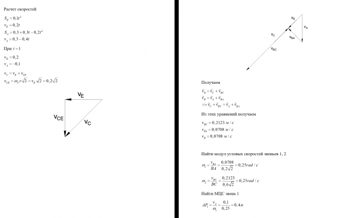 1) определить скорости и ускорения точек A, B,C, угловые скорости и ускорения всех звеньев механизмов; по векторным формулам построить многоугольники скоростей и ускорений точек;