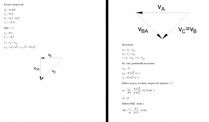 1) определить скорости и ускорения точек A, B,C, угловые скорости и ускорения всех звеньев механизмов; по векторным формулам построить многоугольники скоростей и ускорений точек;
