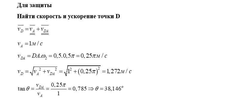 В файле есть полное решение ДЗ и защита (найти скорость и ускорение точки D) 🔥 😍 🔥🔥🔥🔥