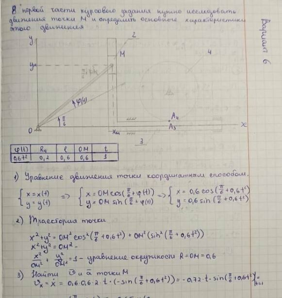 ДЗ 1: Кинематика точки и простейших движений твердого тела вариант 6