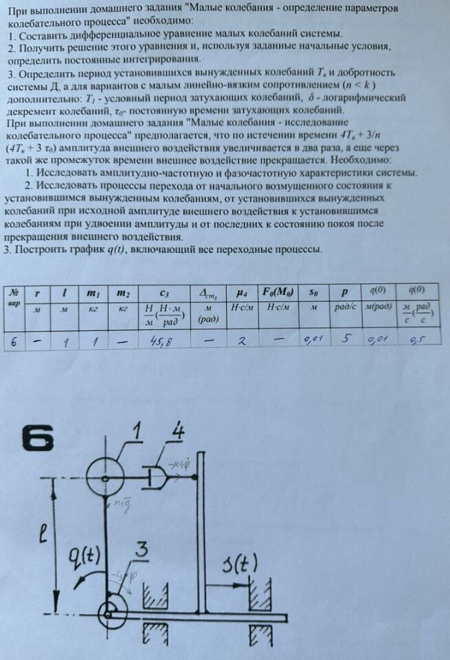 Вариант 6 - ДЗ №4 - Колебания системы с одной степенью свободы