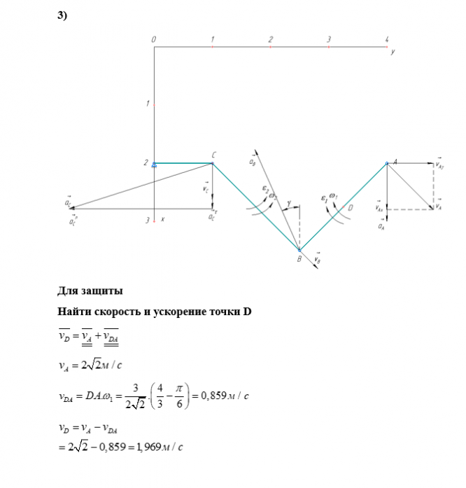 Использование ЭВМ при расчетах должно согласоваться с преподавателем. При защите курсового задания преподаватель рекомендует студенту определить скорость и ускорение какой-либо точки звена механизма, например точки D.