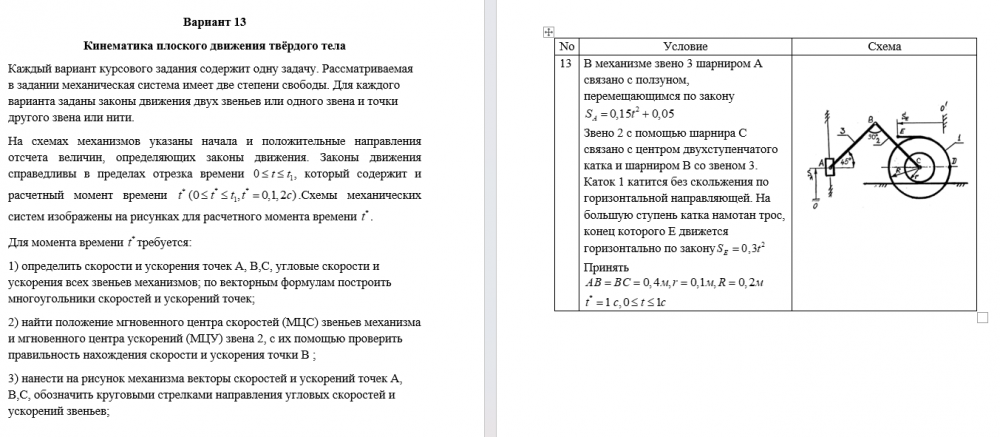 ДЗ 2: Кинематика плоского движения твердого тела вариант 13
