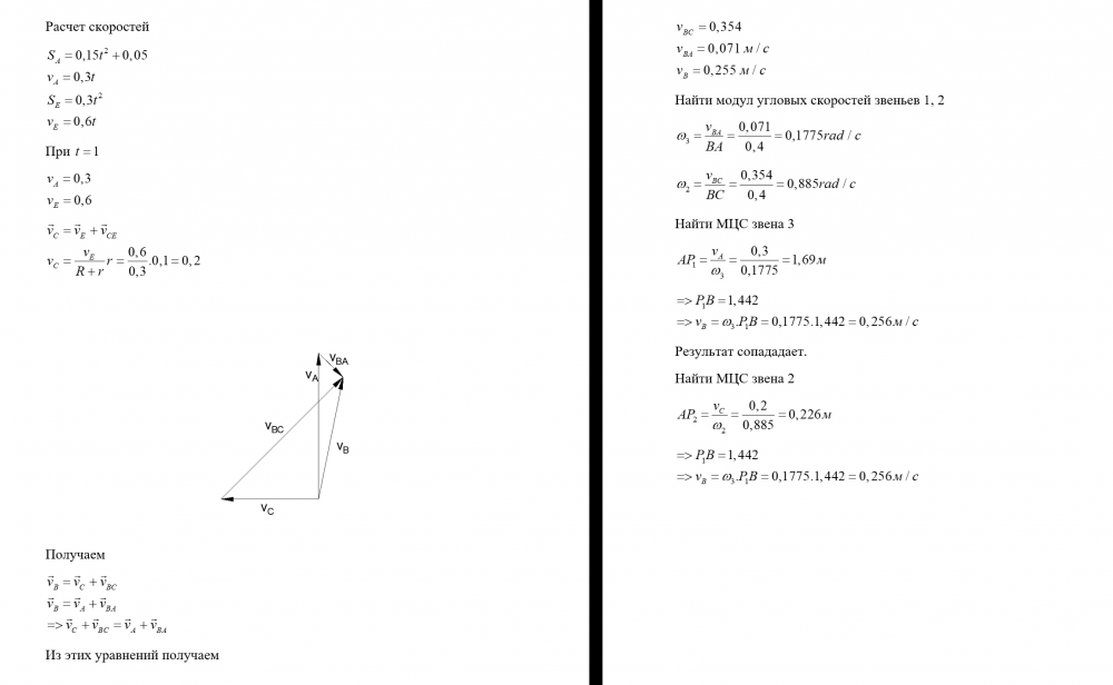 1) определить скорости и ускорения точек A, B,C, угловые скорости и ускорения всех звеньев механизмов; по векторным формулам построить многоугольники скоростей и ускорений точек;