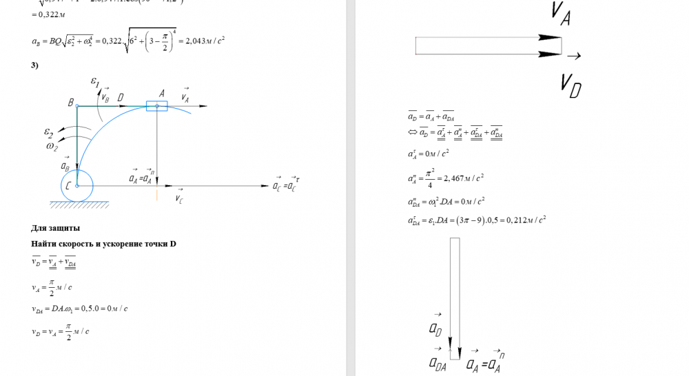 В файле есть полное решение ДЗ и защита (найти скорость и ускорение точки D) 🔥 😍 🔥🔥🔥🔥