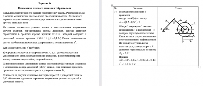 ДЗ 2: Кинематика плоского движения твердого тела вариант 14