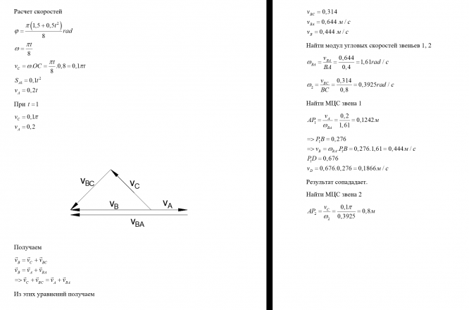 1) определить скорости и ускорения точек A, B,C, угловые скорости и ускорения всех звеньев механизмов; по векторным формулам построить многоугольники скоростей и ускорений точек;