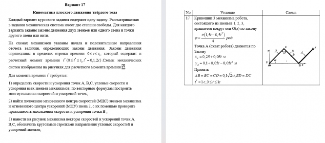 ДЗ 2: Кинематика плоского движения твердого тела вариант 17