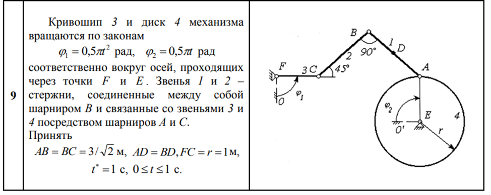 ДЗ 2: Кинематика плоского движения твердого тела вариант 9