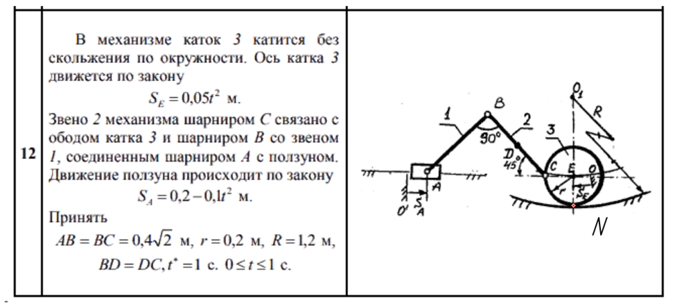ДЗ 2: Кинематика плоского движения твердого тела вариант 12