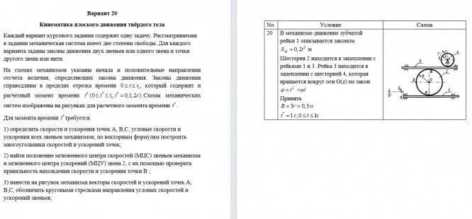ДЗ 2: Кинематика плоского движения твердого тела вариант 20