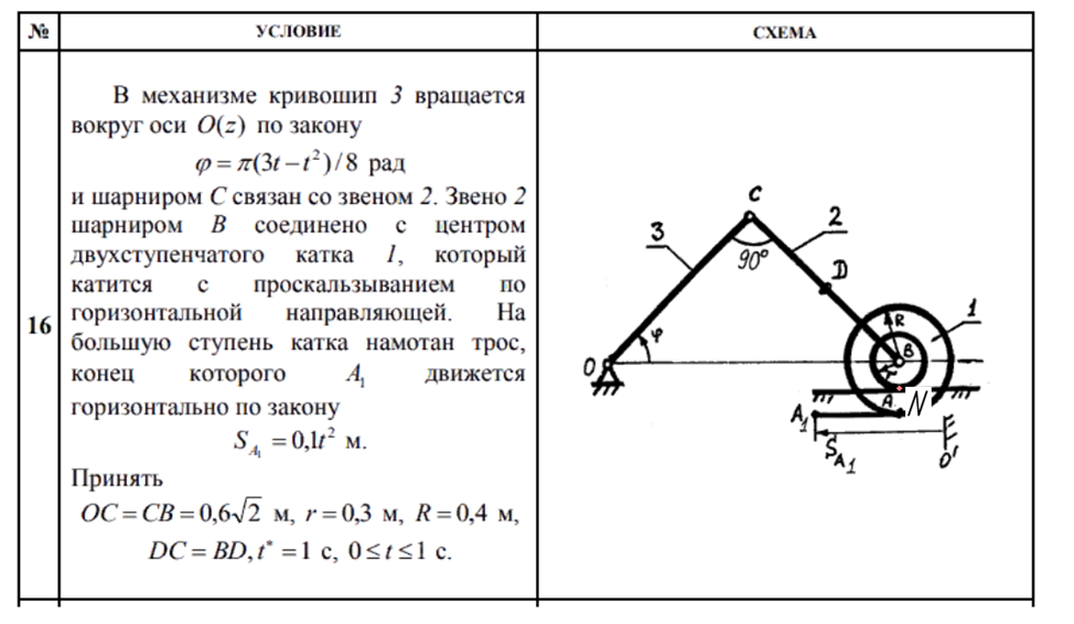 ДЗ 2: Кинематика плоского движения твердого тела вариант 16