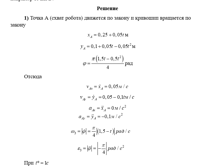 Использование ЭВМ при расчетах должно согласоваться с преподавателем. При защите курсового задания преподаватель рекомендует студенту определить скорость и ускорение какой-либо точки звена механизма, например точки D.