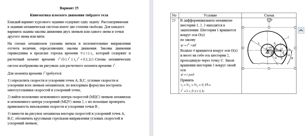 ДЗ 2: Кинематика плоского движения твердого тела вариант 25