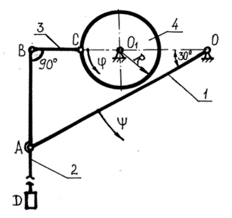 Кривошип 1 шарнирно связан с лопастью 2, поводком 3 и диском 4, который вращается вокруг оси O1(z) по закону