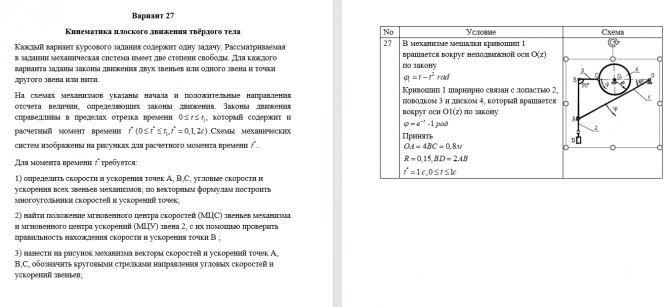 ДЗ 2: Кинематика плоского движения твердого тела вариант 27