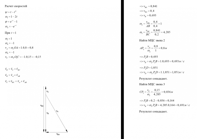 1) определить скорости и ускорения точек A, B,C, угловые скорости и ускорения всех звеньев механизмов; по векторным формулам построить многоугольники скоростей и ускорений точек;