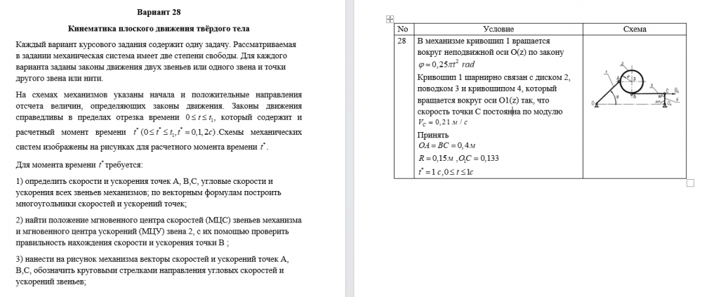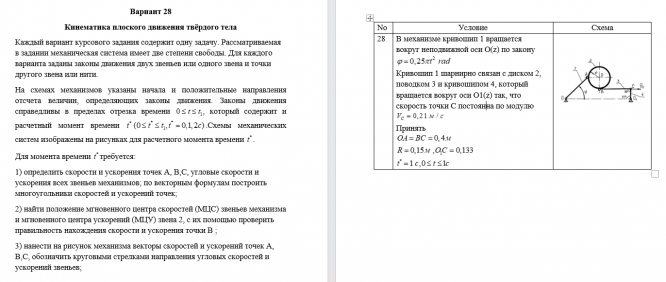 ДЗ 2: Кинематика плоского движения твердого тела вариант 28