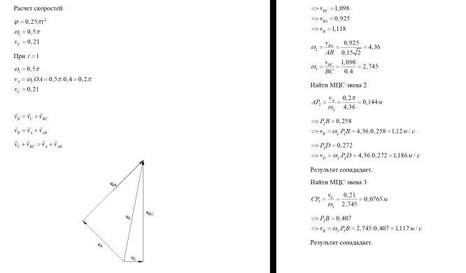 1) определить скорости и ускорения точек A, B,C, угловые скорости и ускорения всех звеньев механизмов; по векторным формулам построить многоугольники скоростей и ускорений точек;
