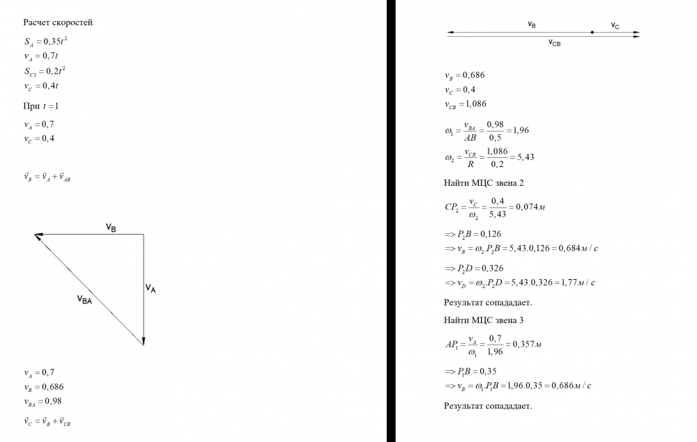 1) определить скорости и ускорения точек A, B,C, угловые скорости и ускорения всех звеньев механизмов; по векторным формулам построить многоугольники скоростей и ускорений точек;