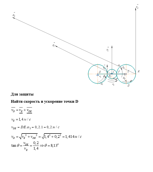 Использование ЭВМ при расчетах должно согласоваться с преподавателем. При защите курсового задания преподаватель рекомендует студенту определить скорость и ускорение какой-либо точки звена механизма, например точки D.