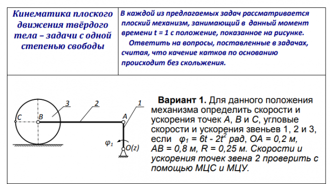 ДЗ 2: Кинематика плоского движения твердого тела вариант 1