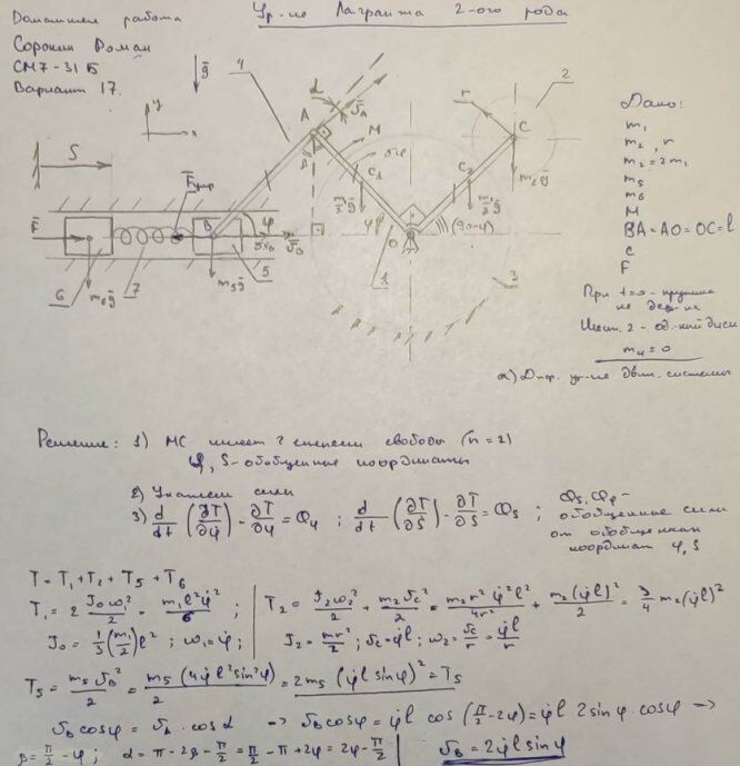 ДЗ 3: Уравнения Лагранжа 2-го рода вариант 17