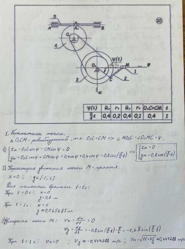 ДЗ 1: Кинематика точки и простейших движений твердого тела вариант 10