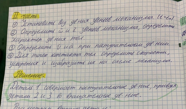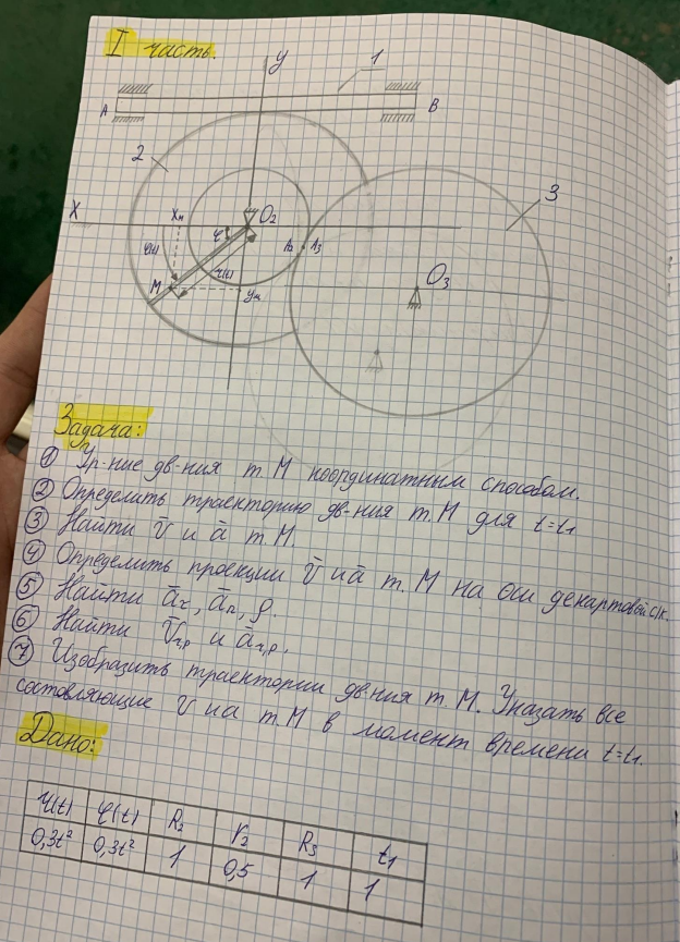 Типовой расчет по теоретической механике, "Кинематика точки и простейших движений твердого тела", 2 части, зачтено